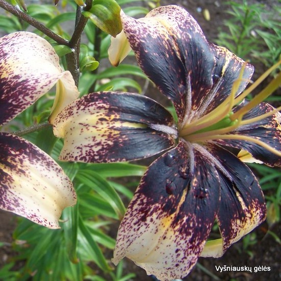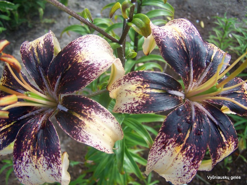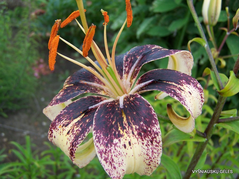 Žiedai šviesiai persikiniai su daugybe tamsių dėmelių. A – 80 cm