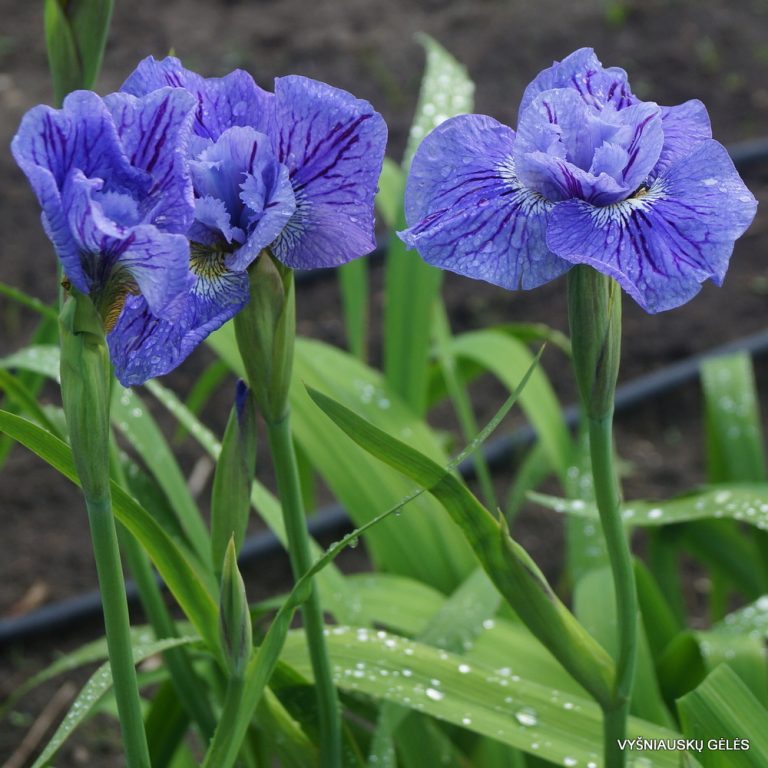 Žiedai mėlyni su violetinėmis gyslomis. Puošnūs, svyrantys lapai. A – 80 – 90 cm