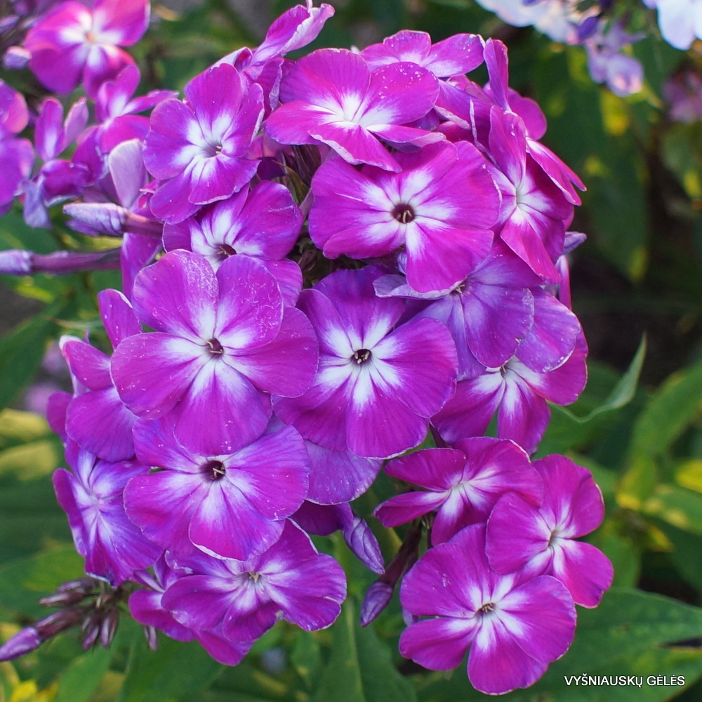 Žiedai dideli raudonai purpuriniai su didele balta žvaigžde centre. A – 75-80 cm