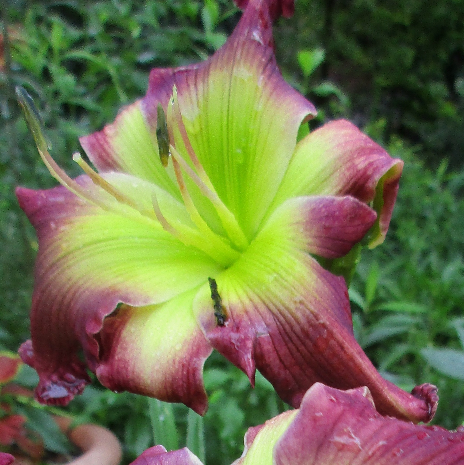 Žiedai nedideli (11 cm skersmens) purpuriniai su žaliu centru. A – 65 cm