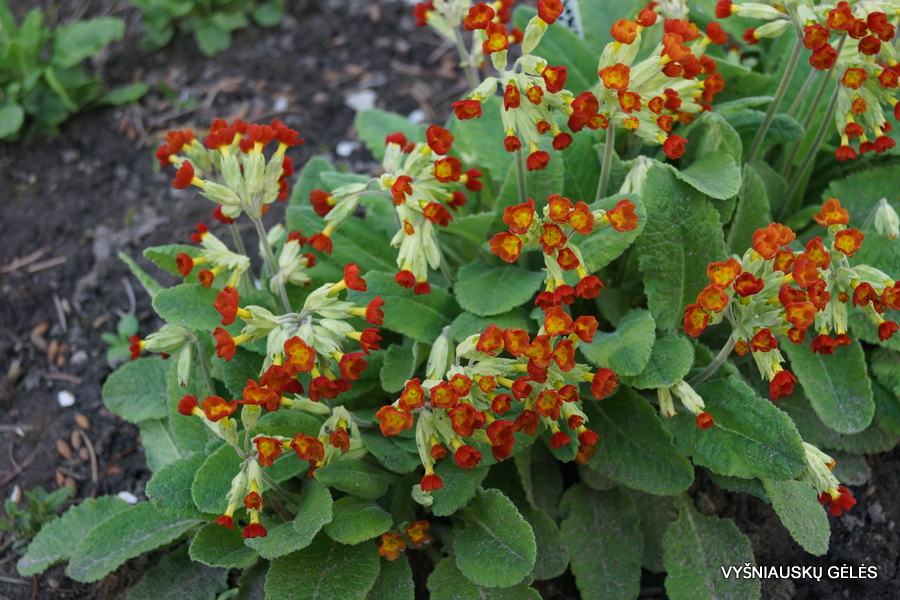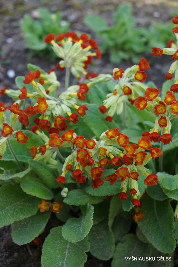Pavasarinės raktažolės veislė ryškiais, raudonai oranžiniais, varpelio formos žiedais. Žydi gegužės mėn. A – 20 cm