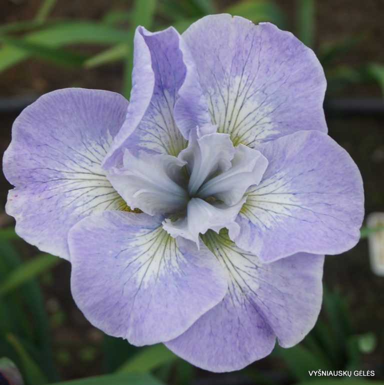 Žiedai šviesiai levandiniai su didele balta dėme ir 6 apatiniais vainiklapiais. A – 75 cm
