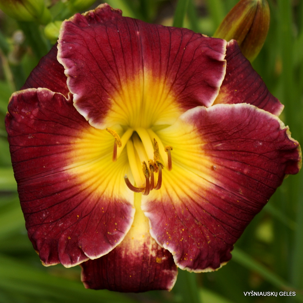 Žiedai vidutinio dydžio (14 cm skersmens) raudoni su žalsvu centru. A – 70 cm