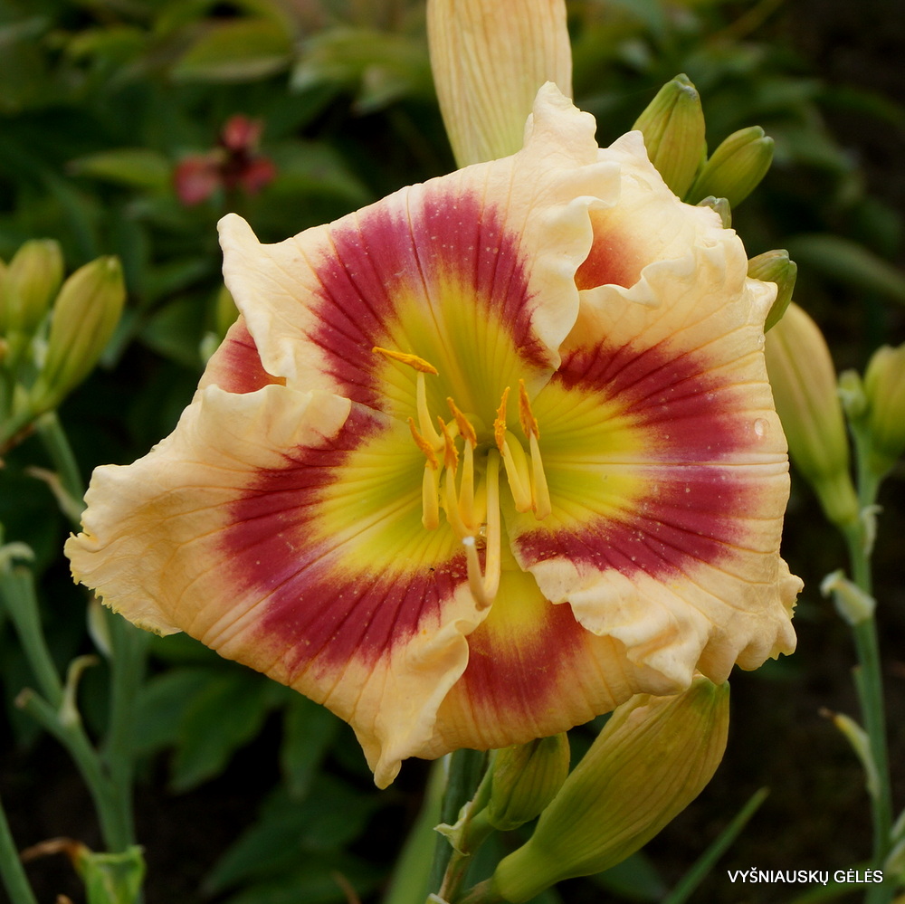 Žiedai nedideli (10 cm skersmens) kreminiai su raudonu centru. A – 70 cm