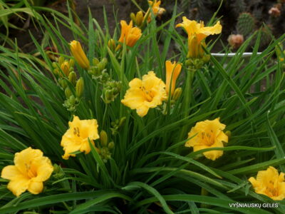 Žiedai labai maži (4 cm skersmens) geltoni. Žydi labai ilgai, iki šalčių. A – 30 cm