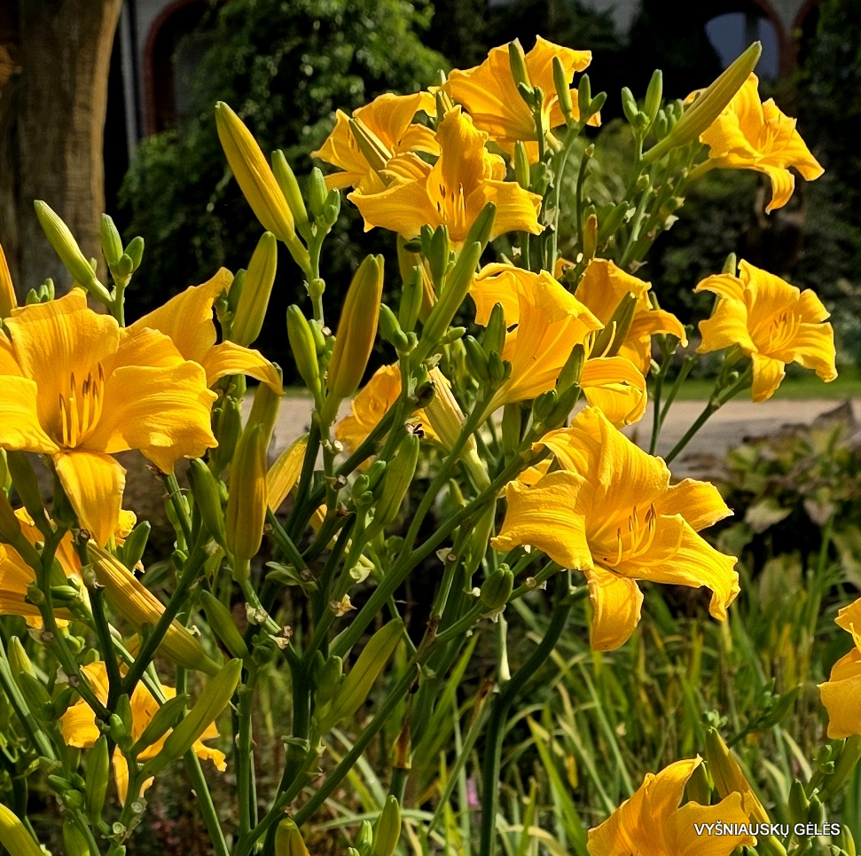 Žiedai vidutinio dydžio (13 cm skersmens) aukso geltonumo su rusvu atspalviu. Vėlyvesnė veislė ir žydi iki šalčių. A – 150 cm