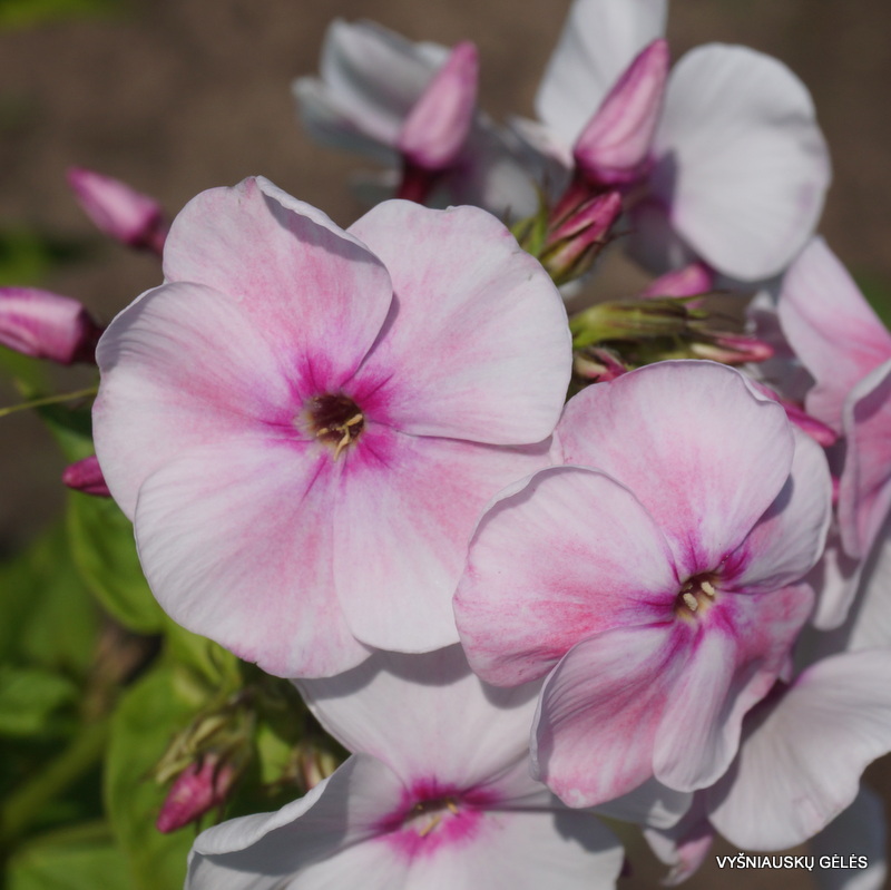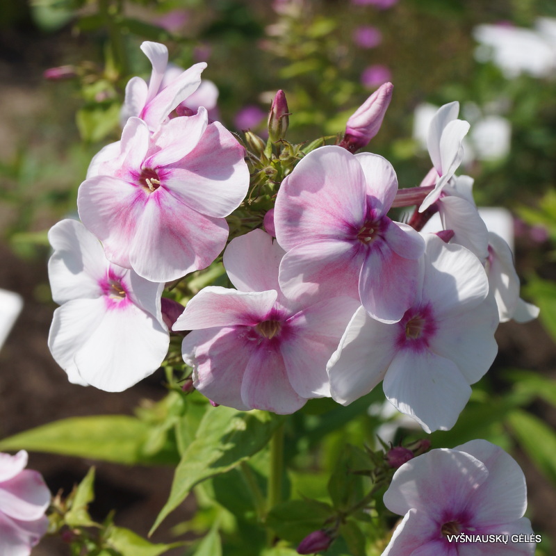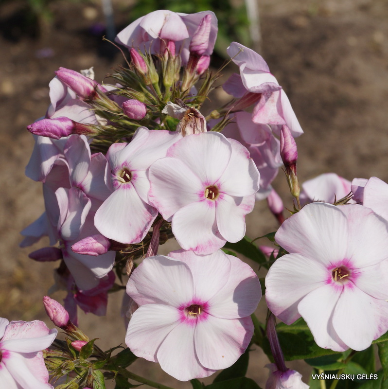 Žiedai stambūs, šviesiai rožiniai su avietiškai raudona akute. A – 75-80 cm