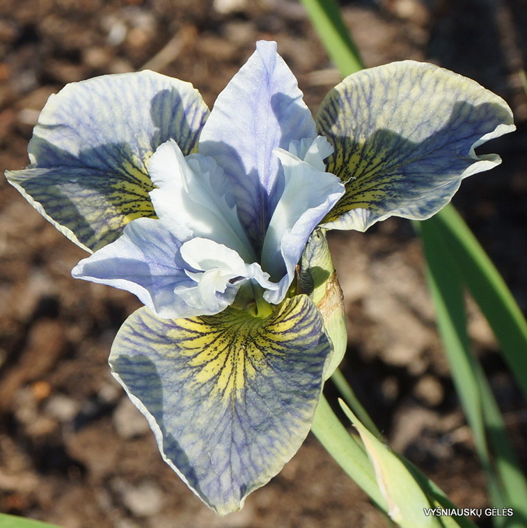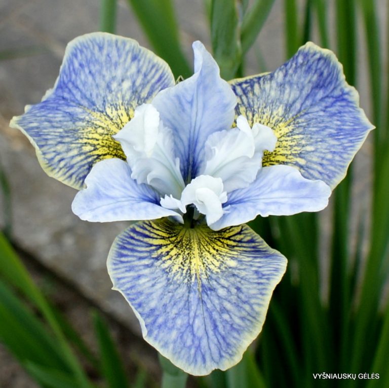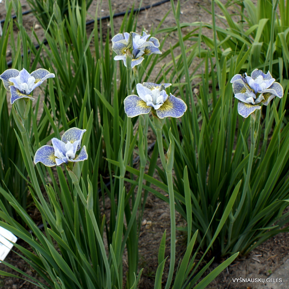 Žiedai šviesiai mėlyni su tamsesnėmis gyslomis ir gelsva dėme. A – 75 cm
