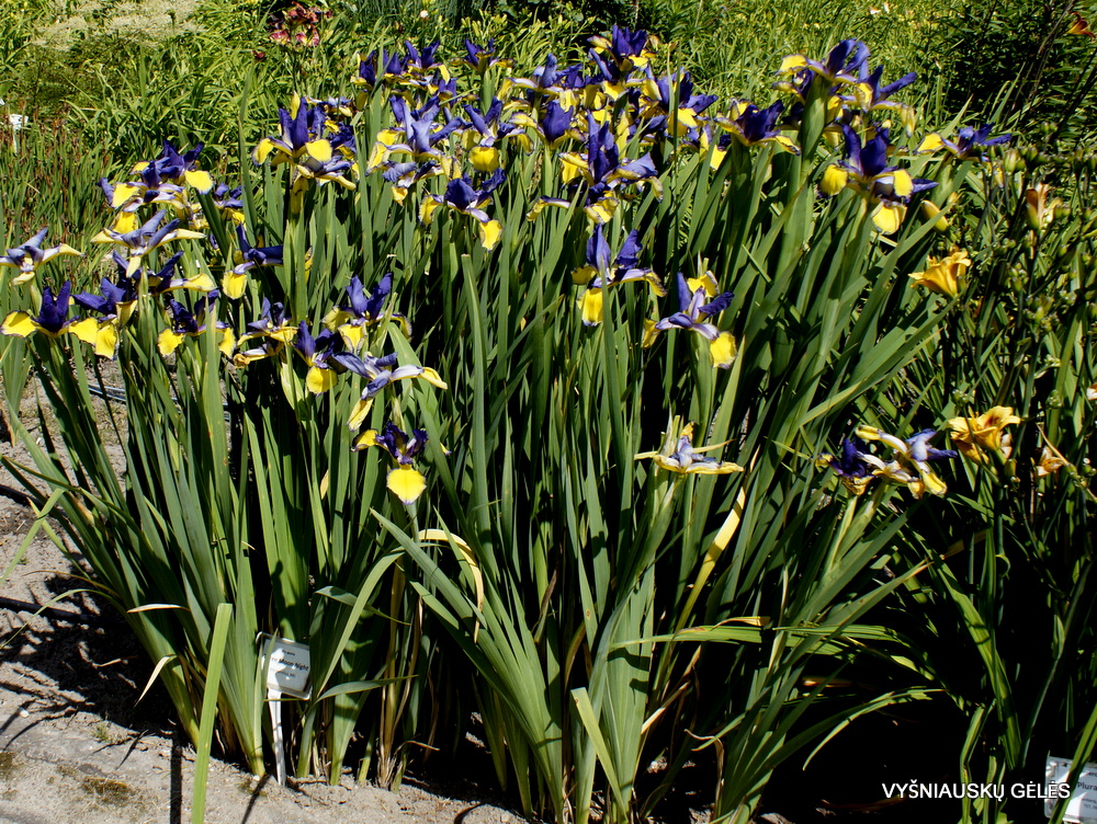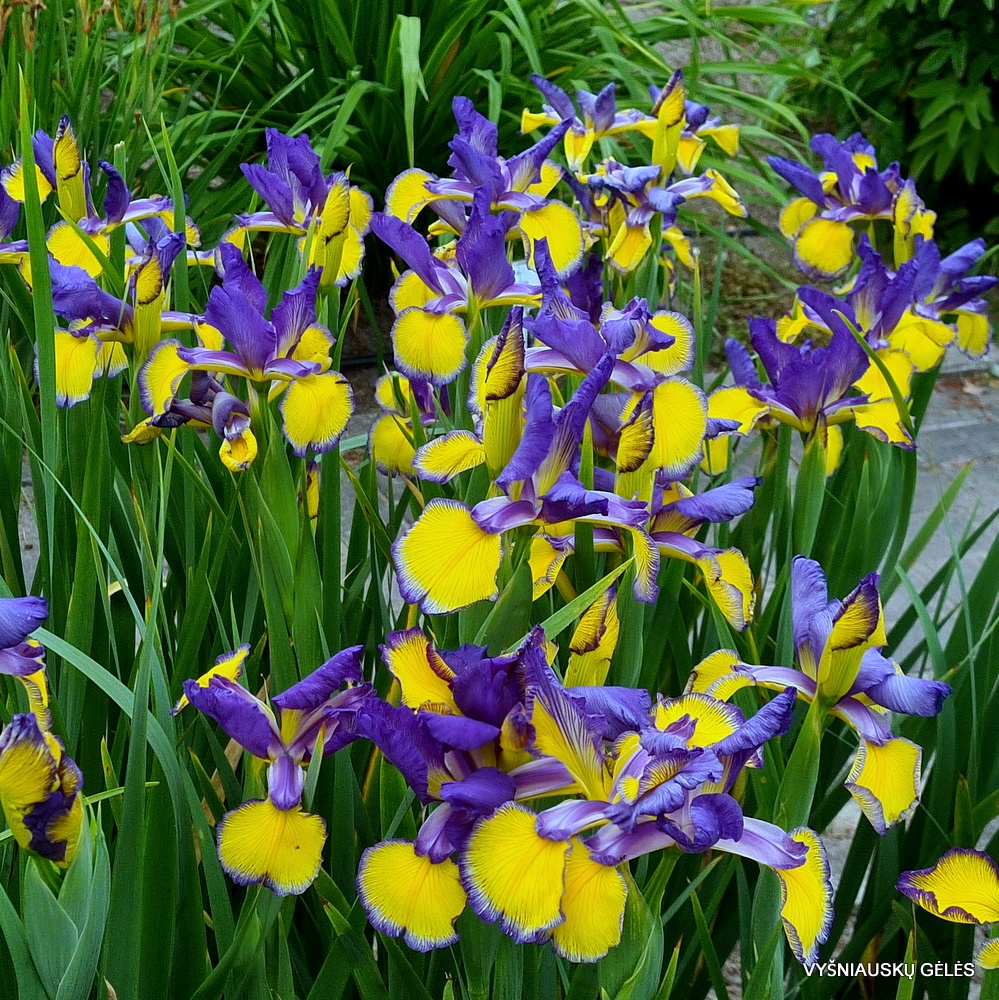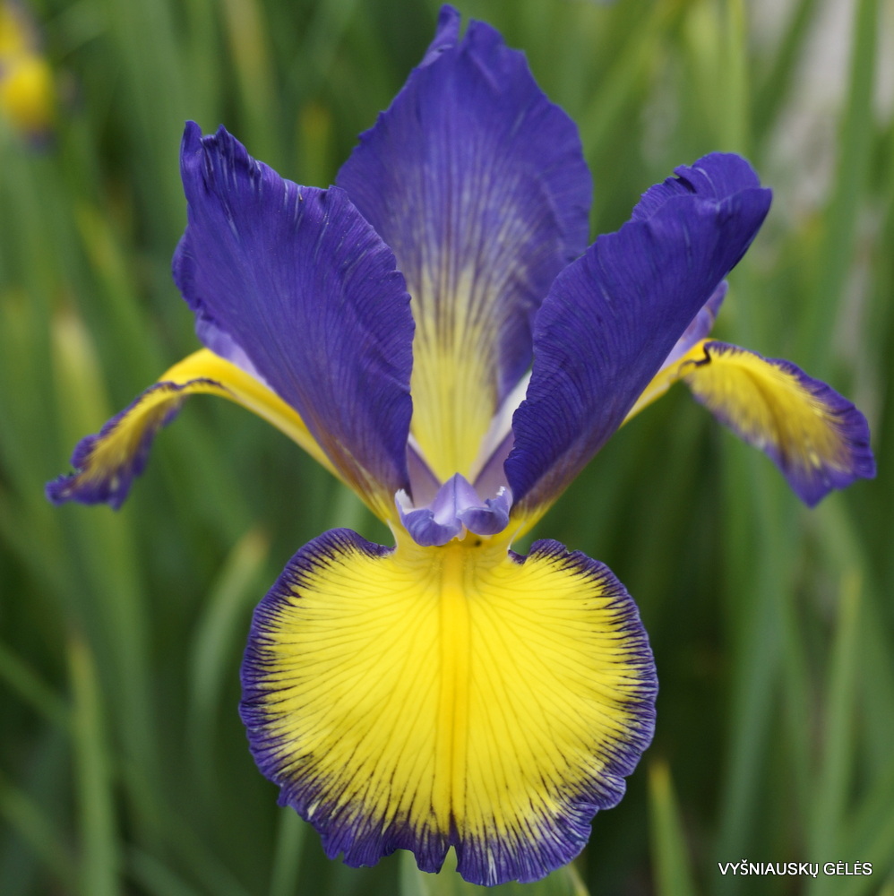 Viršutiniai vainiklapiai violetiškai mėlyni, apatiniai – ryškiai geltoni su siauru ryškiai violetiniu apvadu. Pražysta liepos pradžioje.