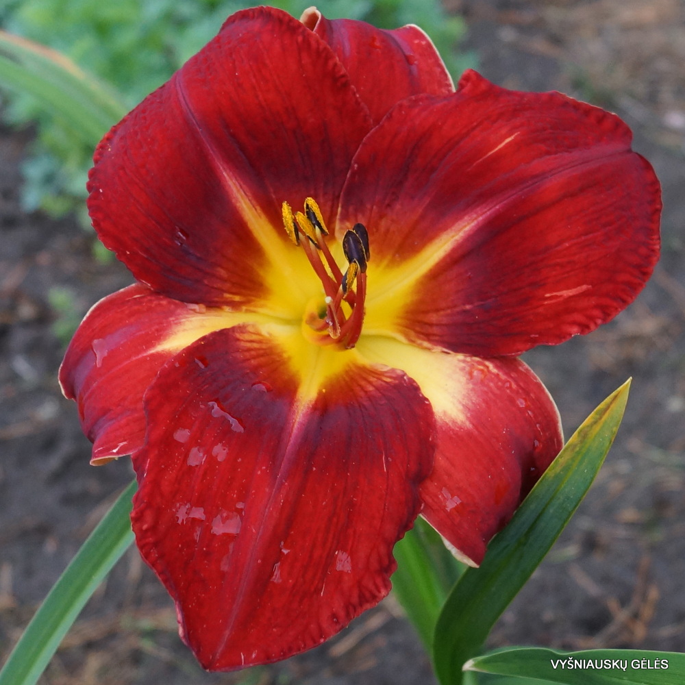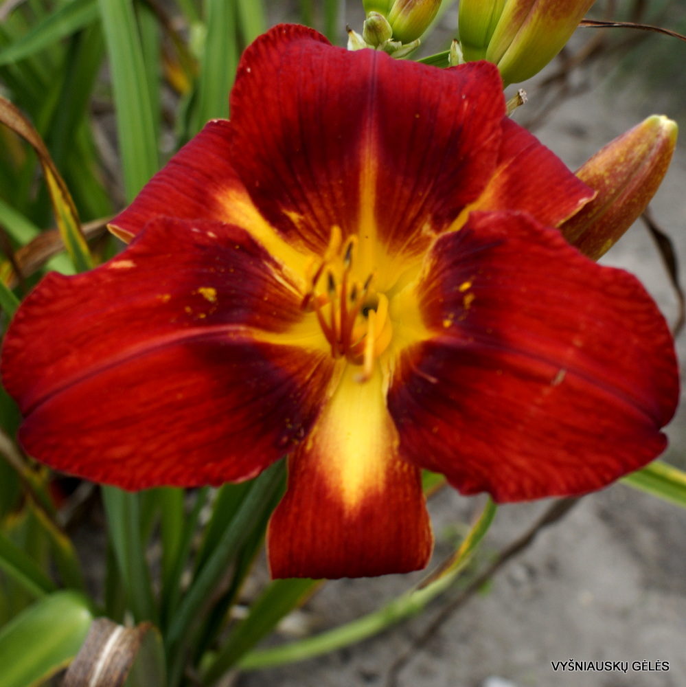 Žiedai vidutinio dydžio (15 cm skersmens) ryškiai raudoni. A – 50 cm