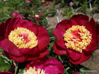 Ypatingai gražus,maloniai kvepiantis bijūnas su stambiais geltonais staminodžiais. Ypatingas dar tuo, kad lapija iki žydėjimo būna raudonos spalvos. A – 70-80 cm